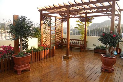 露台一般是指住宅中的屋顶平台,因为环保耐用的原则,近年来越来越多的人会选择碳化木这种新型的木材,来作为露台建筑的主要原材料,这样的露台被称为碳化木露台。碳化木是普通的木材经过高温处理后,木材出现碳化而得名的一种环保类木材。经过高温处理的木材具备了防腐、防潮、防虫蛀以及不易开裂等特点,是露